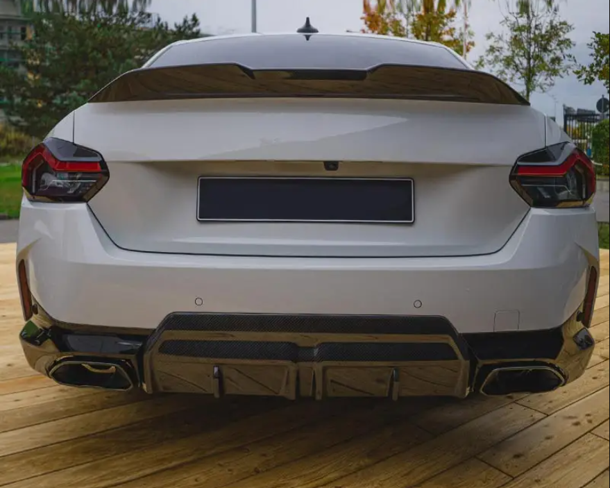 The M Performance (MP) style carbon fiber boot spoiler showcases a gloss carbon finish that captivates a modern aesthetic on your BMW 2 Series G42 model for a signature and dynamic appearance on every occasion.