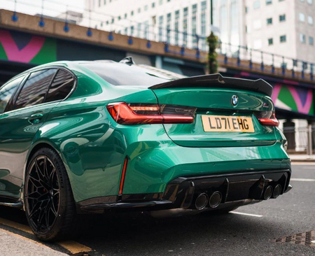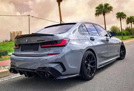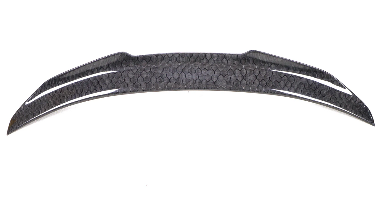 Upgrade the backend of your BMW 3 Series G20 with the PSM style high kick honeycomb carbon fiber boot spoiler. This spoiler highlights a gloss carbon finish that upgrades your stock BMW with a signature appearance.