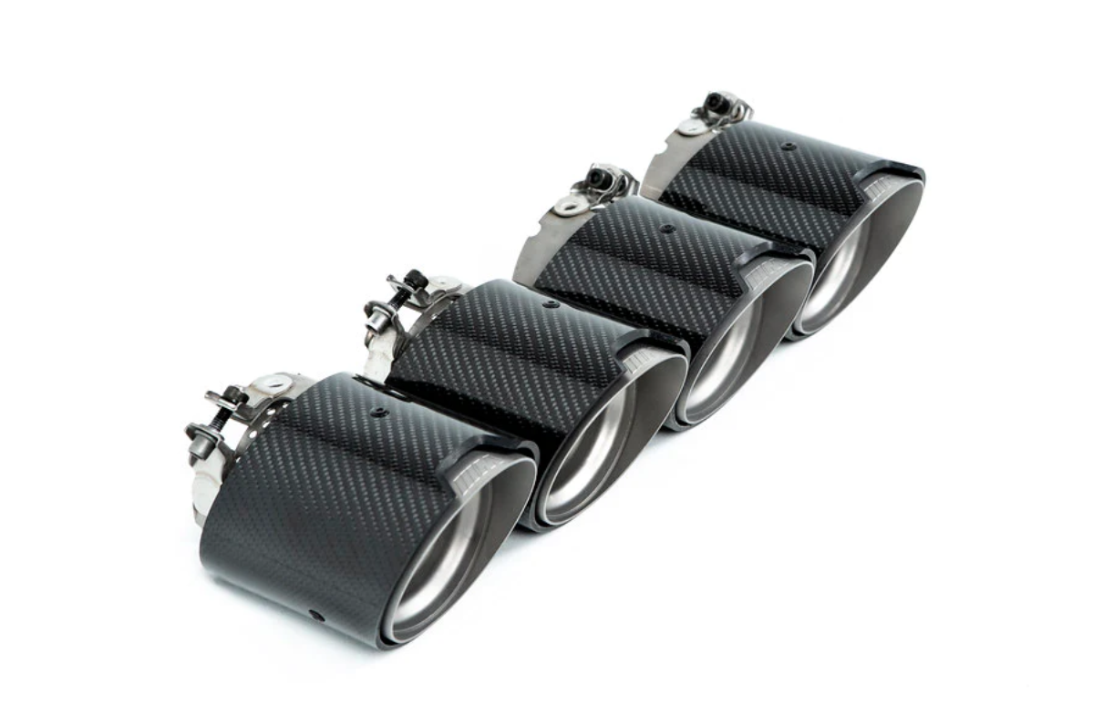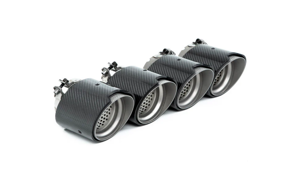 The gloss carbon outer shell is contoured to reveal an laser engraved "M" logo beneath, while the inner tip is perforated for that extra bit of design flair. Leave a lasting impression whenever and wherever you hit the road. This tip set is designed to replace original tips of the OEM exhaust, and are not compatible with the M Performance or other aftermarket exhaust systems. Listed price includes 4 x individual exhaust tips.