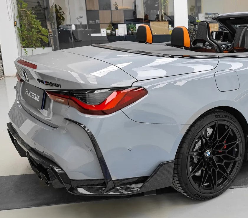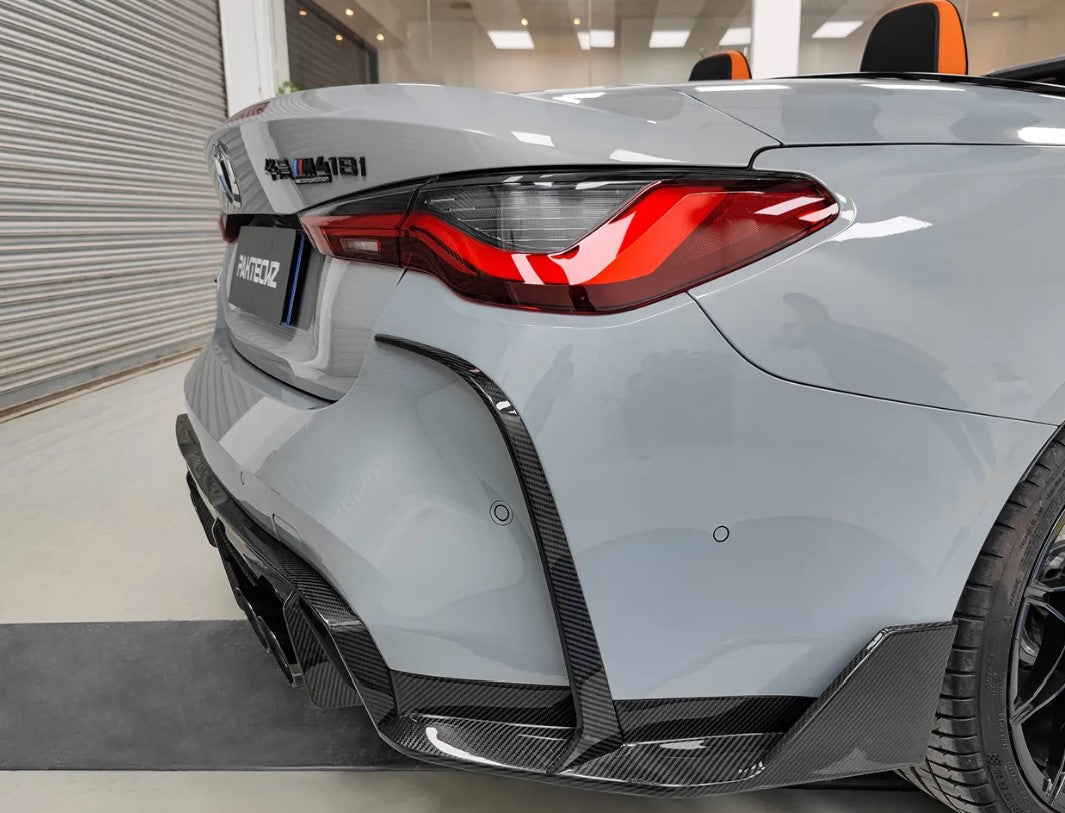 Find the latest from Paktechz design with this rear bumper canard set for the BMW M4 (G82) model. These canards are made from premium quality carbon fiber material, designed to give your BMW a custom premium look.
