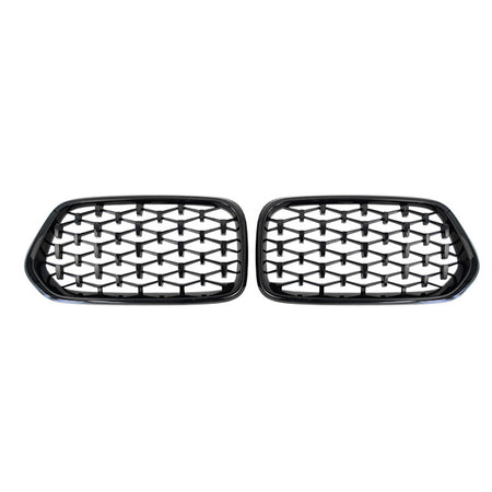 BMW M Performance style high gloss black diamond style front grille for the BMW X2 F39. Replacing the stock chrome grille, this gloss black grille looks more classy and sporty for the X2 Series’ front end. Suitable for all BMW X2 models (F39) from 2018 to present.