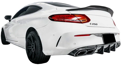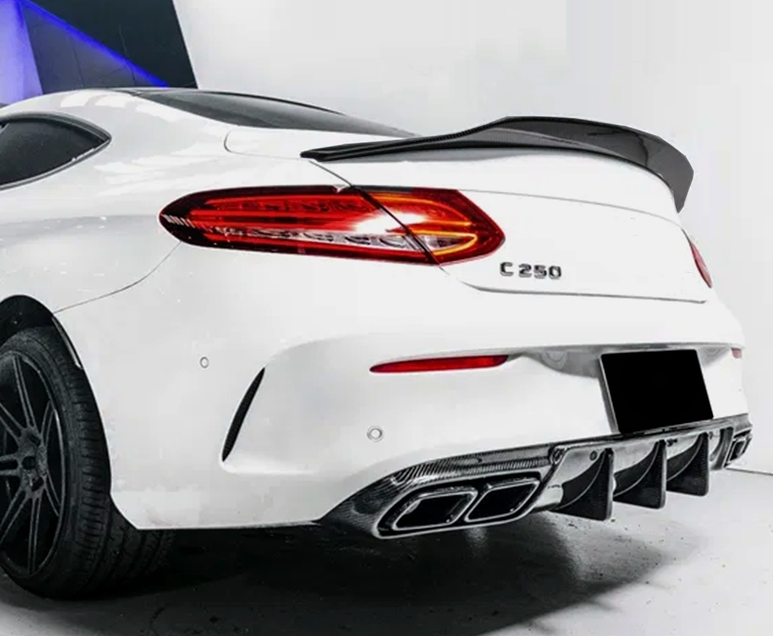 The Mercedes PSM style rear boot spoiler for the C-Class coupe (C205) model is made from light-weight premium quality ABS material giving it superior strength and rigidity.