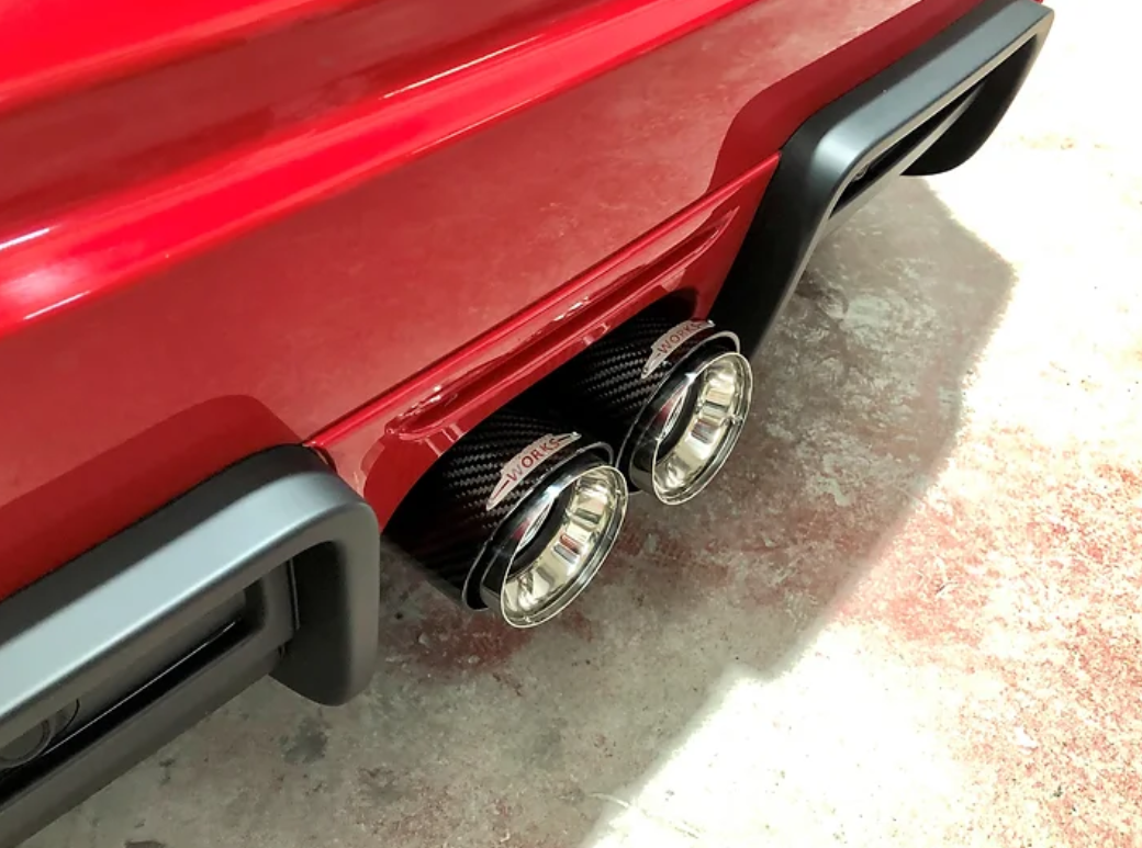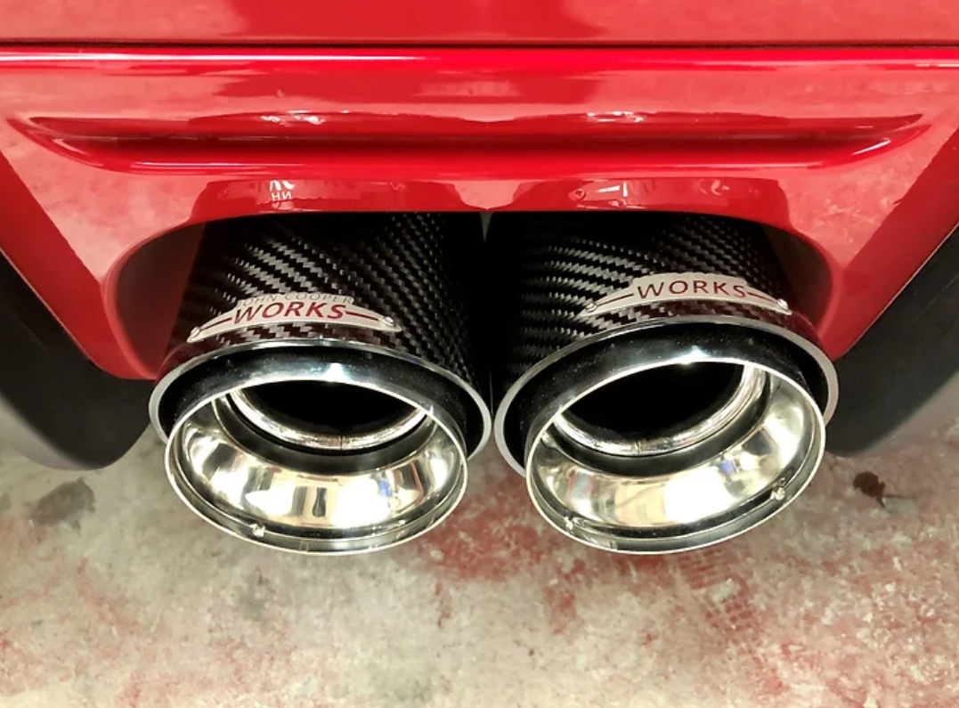The gloss carbon outer shell is contoured to reveal the JCW logo, while the inner tip is perforated for that extra bit of design flair. Leave a lasting impression whenever and wherever you hit the road. This tip set is designed to fit over the original tips of the OEM exhaust. Listed price includes 2 x individual exhaust tips.