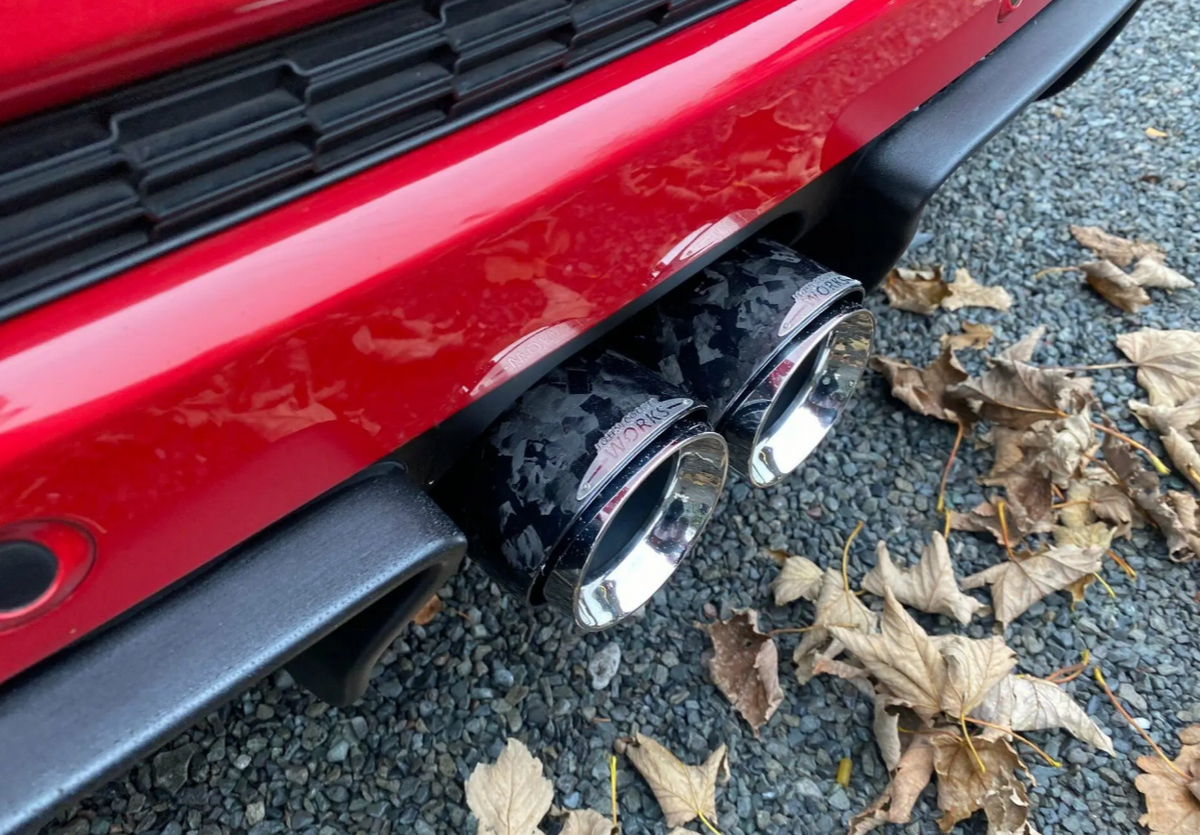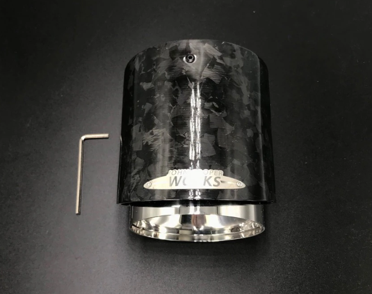 The forged carbon outer shell is contoured to reveal the JCW logo, while the inner tip is perforated for that extra bit of design flair. Leave a lasting impression whenever and wherever you hit the road. This tip set is designed to fit over the original tips of the OEM exhaust. Listed price includes 2 x individual exhaust tips.