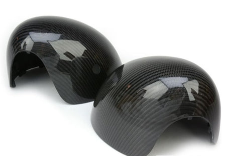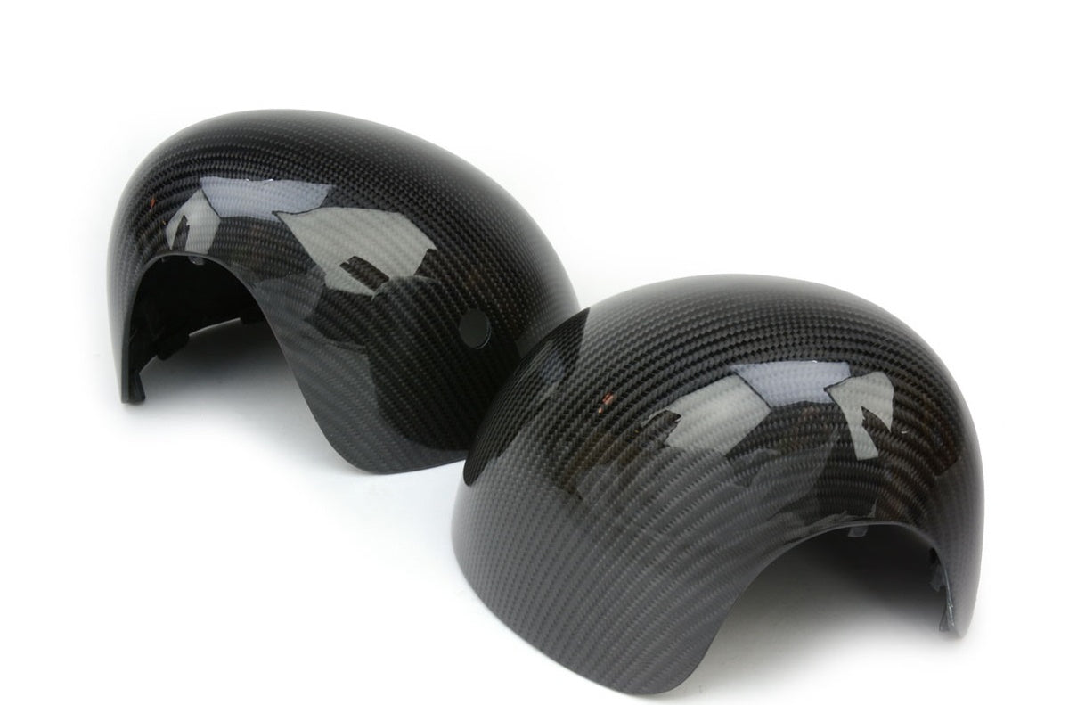 Ultra-light, ultra-strong, ultra-cool. The JCW style exterior mirror cap cover set in carbon fibre is elaborately hand-crafted. This racing-tested high-tech material consists of high-quality carbon fibres – for a look that starts in the core. These mirror covers are suitable for all Mini Cooper (F56) 3rd Generation models from 2014 to present. Price is for a set of 2 full replacement mirror covers.