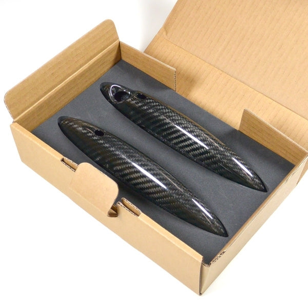 Ultra-light, ultra-strong, ultra-cool. These 2-door handle smart key cover sets in carbon fibre is elaborately hand-crafted. This racing-tested high-tech material consists of high-quality carbon fibres – for a look that starts in the core. Each set consists of 2 x keyless door handle covers, suitable for all Mini Cooper (R56) 2nd Generation models from 2006 to 2013.