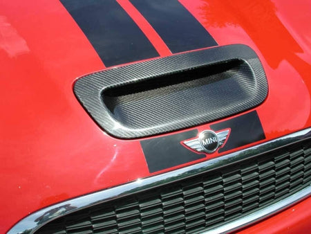 Ultra-light, ultra-strong, ultra-cool. This front bonnet vent scoop in carbon fibre is elaborately hand-crafted. This racing-tested high-tech material consists of high-quality carbon fibres – for a look that starts in the core. These vent covers are suitable for all Mini Cooper (R56) 2nd Generation models from 2006 to 2013.