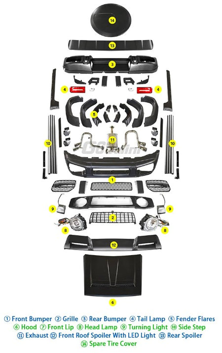 Get the latest upgrade in body kit designs for your Suzuki Jimny. The mini G63 B style full front to back replacement body kit promises to add a distinctive touch to your Jimny.
