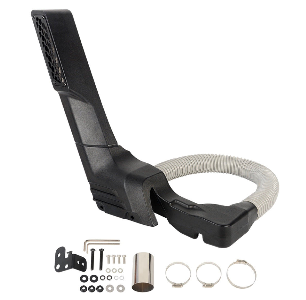 Made of high-quality LLDPE plastic with a material thickness of 3mm, this snorkel kit is designed for easy installation and perfect fit. It raises the air intake above water level, improves engine performance, and protects the engine while offering fuel savings.